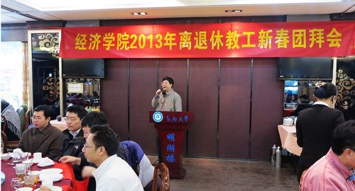 1月6日中午,beat365英国官方网站2013年离退休教工新春团拜会在beat365英国官方网站明湖楼举行,80余位离退休教工欢聚一堂,学院刘少波院长、谭其学书记、郑少智副院长、张志副书记、刘金山副院长、各系有关领导参加团拜会,与大家一起庆贺新年。