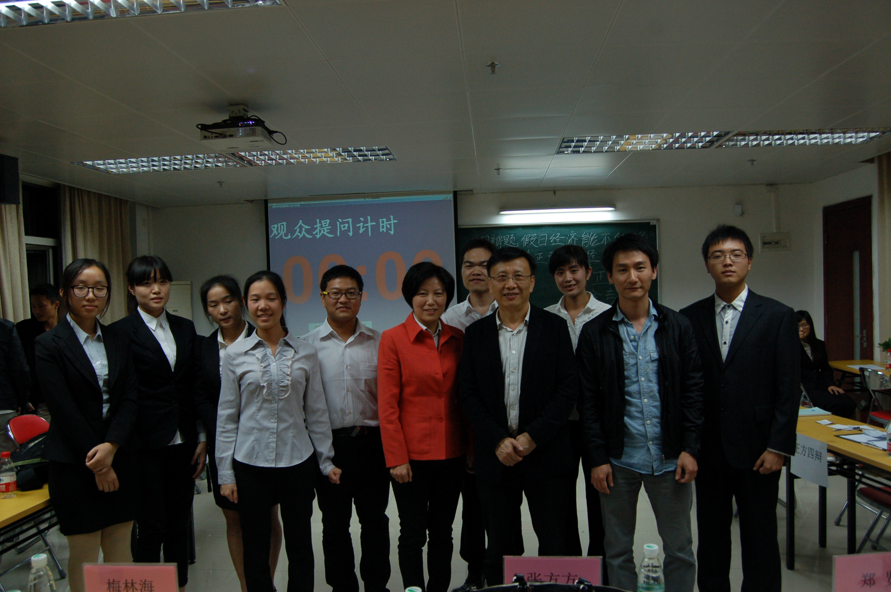 2013年11月20日晚19点,经院208会议室内气氛热烈,由beat365英国官方网站主办的“辩响经院”半决赛在此紧张而激烈的进行。比赛邀请到了梅林海老师,张方方老师和郑贤老师担任评委。
