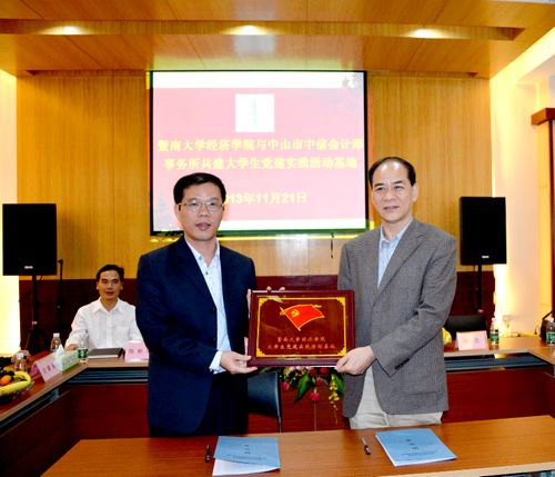 2013年11月21日早上8点,beat365英国官方网站党委谭其学书记、张志副书记带领有关系所总支、支部老师及部分学生干部20余人前往中山市中信会计师事务所,举行共建大学生党建实践活动基地签约仪式。学院师生到达中信会计师事务所以后,受到了该事务所所长陈彬海、副所长兼该所党支部书记郑健钊以及事务所内党员骨干的热烈欢迎。