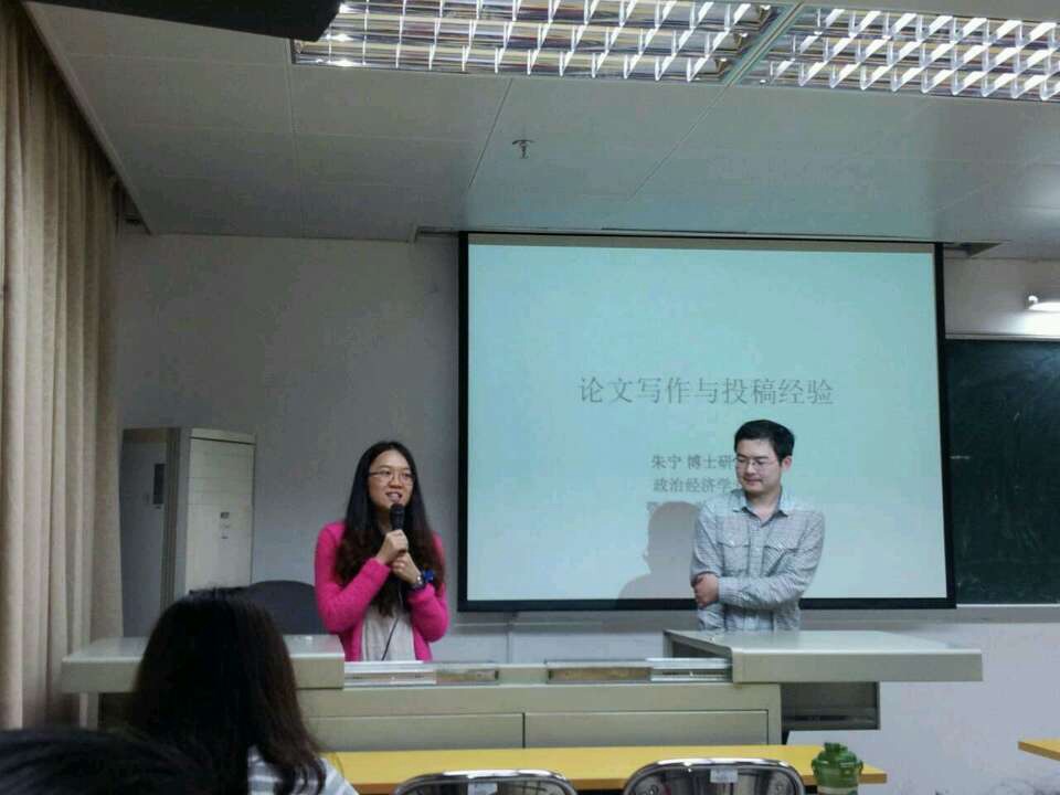 2014年5月8日晚上19:00在beat365英国官方网站208室举办主题为“论文写作与投稿经验”的博士生交流会,主讲人政治经济学专业2012级博士研究生朱宁。
