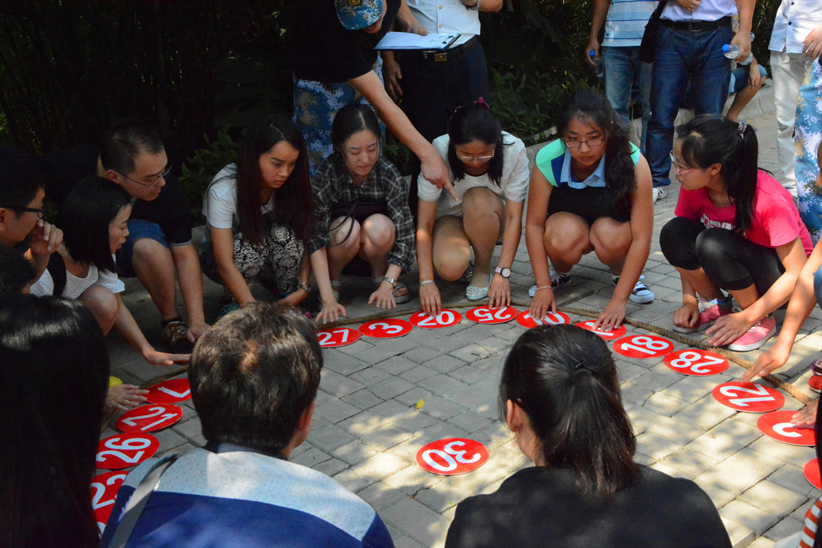 第二个项目是尖峰时刻,将1-30的数字按散乱地排成一个圆形,学生需要按从小到大的顺序用手拍过这些数字,用时最短的团队获胜,这考验了同学们的随机反应能力和队长的组织协调能力。