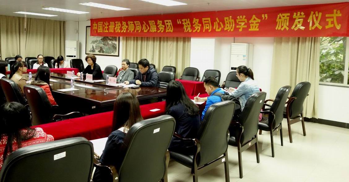 中国注册税务师协会同心服务团是经中央统战部同意,国家税务总局批准,于2013年8月份成立的注册税务师行业的公益性组织,其宗旨是抓好“同心”教育,突出“同心”实践,注重“同心”实效,促进行业健康发展。“税务同心助学金”是由上海德勤税务师事务所有限公司在我院出资捐助的一项社会公益项目,资助我院税收专业3名本科生和1名研究生生活费用,每人每年资助3000元,其中研究生捐助1年,本科生捐助3年。
