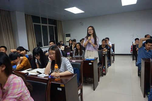 2011级应用统计专业研究生关启亮,目前担任广东银石投资有限公司研究员,他用历年的数据通俗地给大家介绍了私募的基本概念以及私募公司的成长空间和急需人才的情况。此外,他还鼓励同学们多研究身边的经济现象,并说“工作也是一种投资,也许开始不会有很多物质回报,但我们会获得很多知识和经验,这是一种无形的资产。”