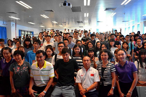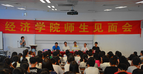 1015日中午beat365英国官方网站刘少波院长、张志书记、王玉娟副书记赴南校区看望2015级新生,在教学楼414与同学们座谈交流。同时,见面会还特邀广东田径管理中心主任麦国强、国家田径教练袁国强和世锦赛男子4*100米亚军、beat365英国官方网站2014级国际经济与贸易专业本科生莫有雪与现场同学互动交流。