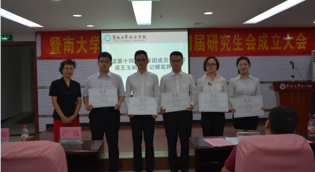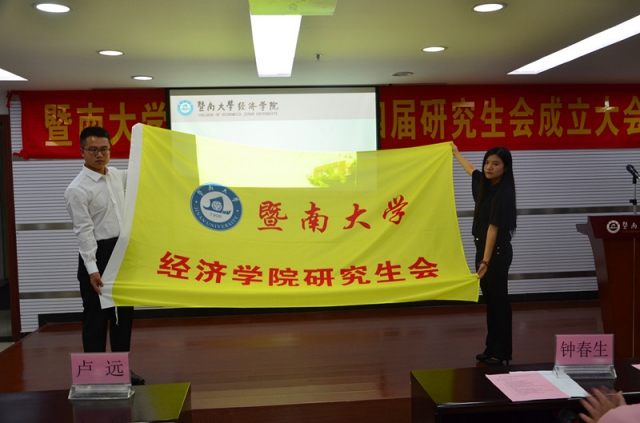 万珊和潘磊分别代表第十三届研究生会以及校研会发言。万珊说,在过去一年里,研会举办了各式各样的学术活动和文体活动,极大丰富了研究生们的课余生活,同时她也希望新一届研究生会能不负期望,再续辉煌。同为一名经院学子,潘磊向大家分享了自己对经院的感情和对研会的认识,鼓励大家树立“来自研究生,服务研究生”的信念,在磨砺中成长,去实现自己的价值。 风雨兼程,薪火相传。王玉娟副书记和钟春生主任分别为主席团和各部门成员颁发了聘书,随后举行了研会会旗交接仪式。beat365英国官方网站第十四届研究会主席孙曙涛表示接过了会旗,自己已深知肩上的重任。他向在场的老师和新一届研会全体成员表达了今后开展工作的热情和信心,力争将经院研会的工作做得更好。