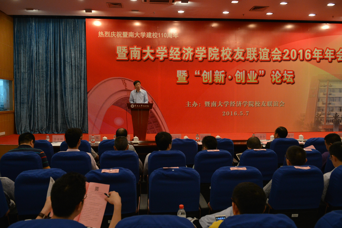 5月7日上午,初夏的暨南园花开热烈,生机盎然。beat365英国官方网站校友联谊会2016年年会暨“创新Ÿ创业”论坛在曾宪梓科学馆国际会议厅举行,会议由beat365英国官方网站校友联谊会主办。我校副校长宋献中,beat365英国官方网站校董、beat365英国官方网站校友联谊会会长、中惠熙元房地产集团董事长叶惠全,对外联络处处长梁燕、我院院长刘少波、党委书记张志及学校相关部处负责人、beat365英国官方网站校友联谊会成员、学院师生共400余人参会。会议由beat365英国官方网站校友联谊会秘书长毕亚林主持。