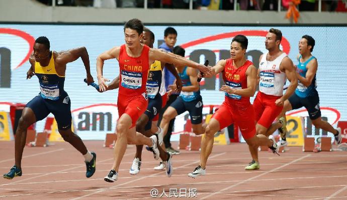 比赛中,中国队表现出非常好的配合流畅度。发令枪响,第一棒陈时伟稍微有些迟疑,启动不是很好,中国队处在落后的位置。第二棒谢震业奋起直追,但仍然没能缩小差距。第三棒由黄种人百米纪录保持者苏炳添出马,他的弯道技术炉火纯青,逐步追了回来,让中国队进入直道与领先的牙买加混合队并驾齐驱!最后一棒张培萌顶住压力,压制住了牙买加混合队,通过强力冲刺第一个撞线。