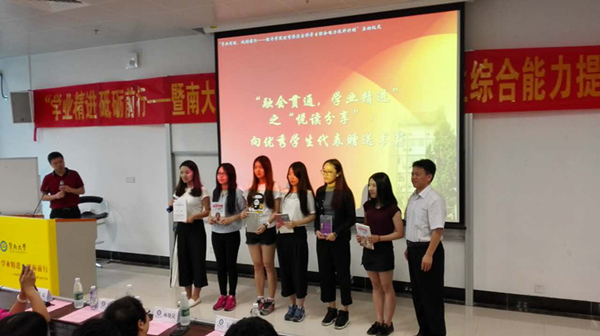 “悦读分享”是该项计划的组成部分,旨在组织专家学者为同学们推荐书目,并赠送部分书籍,同学们通过这个活动,相互交流读书心得,进一步培养良好的阅读习惯,引导优良学习养成。区向丽、林晓灵和王玉娟分别向18名优秀学生代表赠送书籍,这些学生分别获得beat365英国官方网站港澳台侨学生一等奖学金。