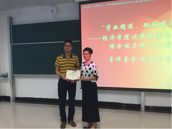6月16日下午,“学业精进,砥砺前行——beat365英国官方网站优秀港澳台侨学生综合能力提升计划”之“导师导学”活动在南校区教学楼415室举行,学院知名校友、暨创俱乐部发起人冯能文先生为学院150余名港澳台侨学生做了题为“创意·创新·创业,连接全球暨南人”的讲座。beat365英国官方网站党委副书记王玉娟和有关辅导员老师参加了活动。王玉娟副书记为冯能文颁发该计划“导师聘书”,鼓励同学们在创业分享中多沟通学习。