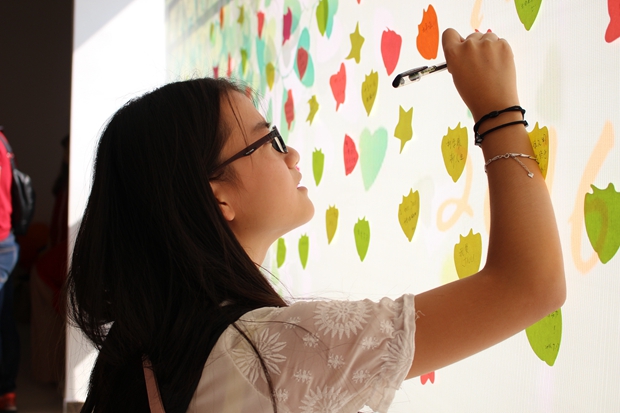 (新同学在心愿墙前留言)