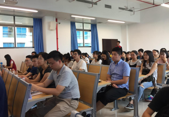 唐庆峰主要介绍了“大学生创新创业”的相关内容,包括项目分类、参赛方式、申报流程及优秀范例。随后,主持人通过PPT介绍了该项目聘请的王春超、陈光慧、谢宝剑等其他7位导师,他们均主持多项国家及省部级科研项目,将为同学们日后的创新学习与实践活动给予相应的指导。