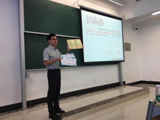 张高祥和唐庆峰分别做了题为《在创新创业中放飞青春梦想——从“挑战杯”和“创青春”竞赛谈起》和《如何争取和利用学校的创新创业学习资源》专题讲座。有着11年大学生创新工作经验的张高祥从“挑战杯”和“创青春”两大竞赛谈起,从赛事背景、参赛规则、项目类别、竞赛阶段、激励措施等五个方面做了详细而生动的讲解,通过视频、文字、图片多种形式,和同学们一起回顾了历届优秀项目成果。讲座中,张高祥重点介绍了beat365英国官方网站学生从2005年至今的“挑战杯”获奖优秀作品,并现场展示了陈列在校史馆中的我院学生刘光天获得“挑战杯”国赛二等奖和“累进创新金奖”的获奖证书,对现场同学很有触动和启发。