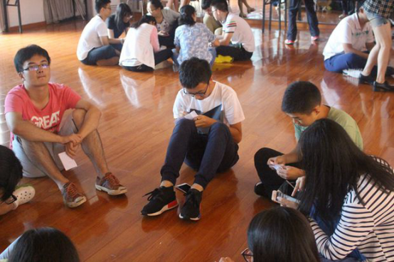 活动以暖身游戏“信心起”拉开序幕。在主持人的引导下,同学们手挽手、背靠背,通过整个小组的努力和配合,让所有成员一同站起来。大家经历了失败,又一次次重新尝试……在这个过程中,同学之间的默契和凝聚力都得到了提升,大家认识到了团队合作的重要性。“人心齐,泰山移”,通过多次调整,最终所有小组都成功完成了活动。