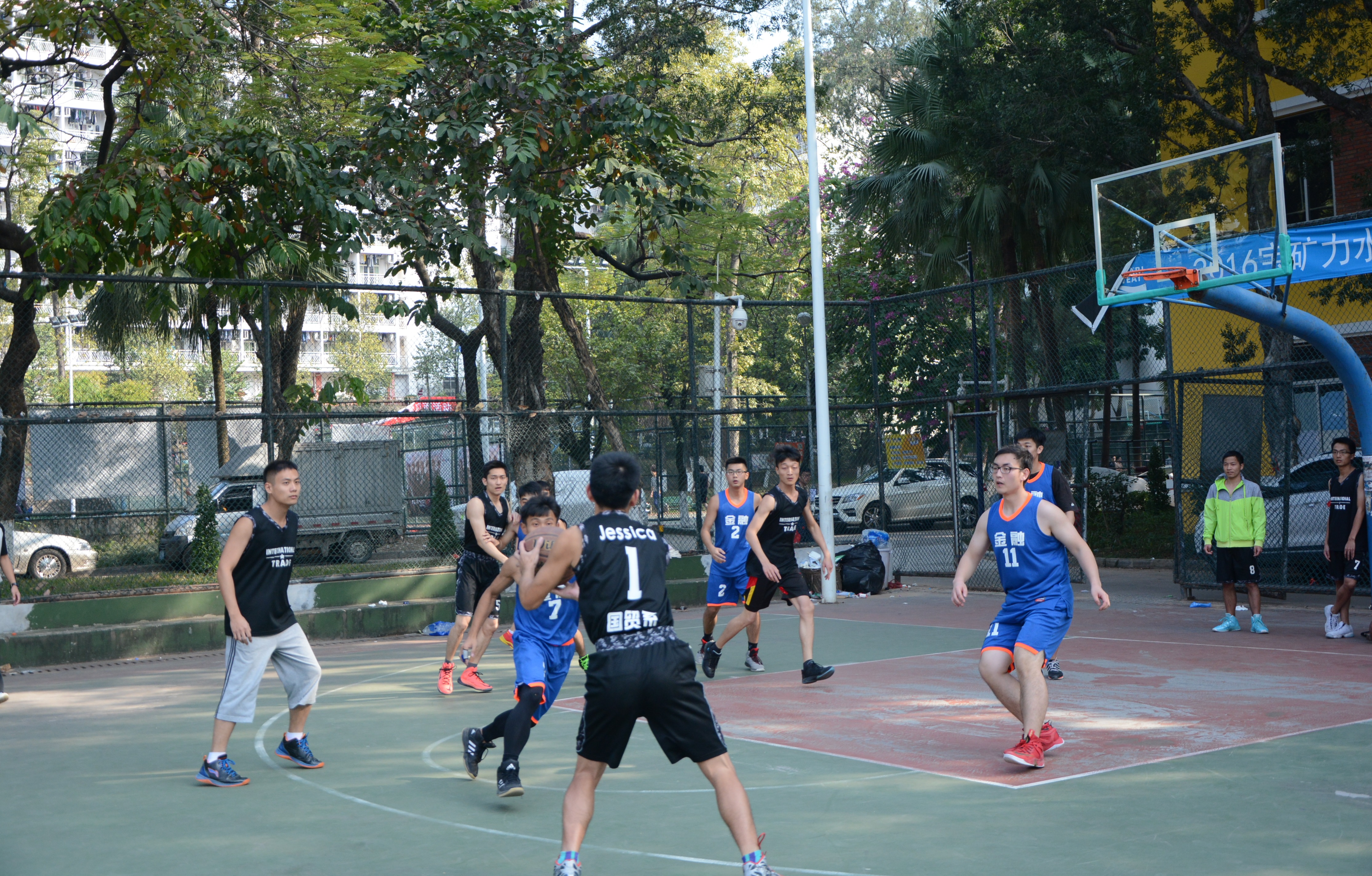 2016年12月18日下午两点半,金专和国贸的篮球运动员在旭日运动场展开了激烈的季军争夺赛。