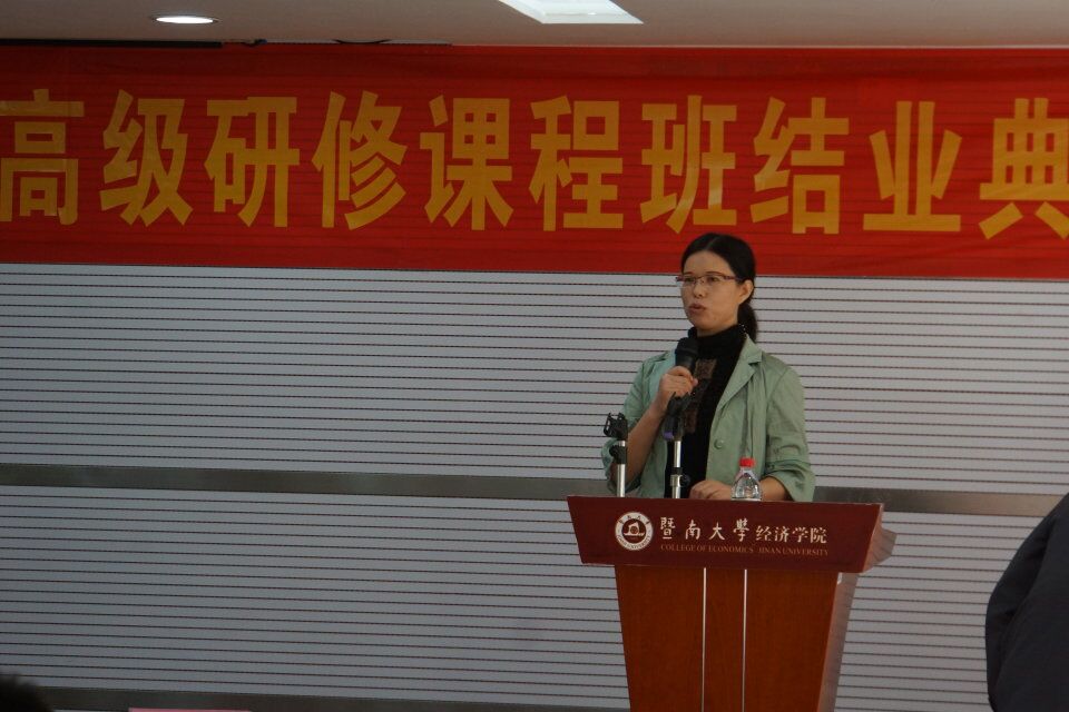 财税系余英老师作为授课老师代表发言,主题是《请注意列车与站台之间的空隙》。她寄语在座学员:意念与行动之间的距离远远大于静止的站台与前行的列车之间的距离,我们需要努力学习、勤于思考、付诸行动,要将“我想”转化成“我做”,才能使自己足够强大,足以让自己迷茫的一生勇敢地进行下去。