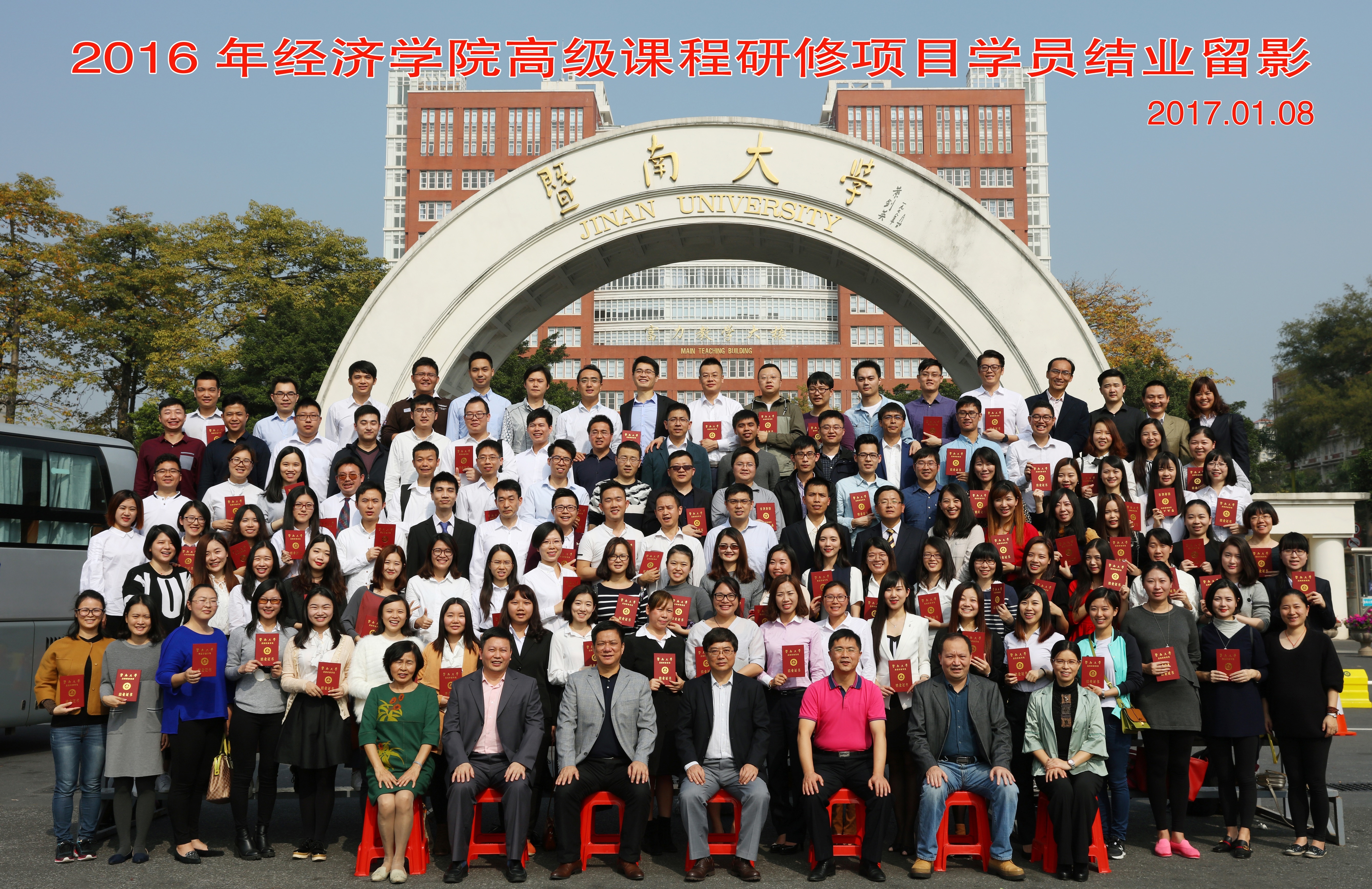 结业典礼后,与会领导、老师以及学员们移步beat365英国官方网站南门进行合影留念。