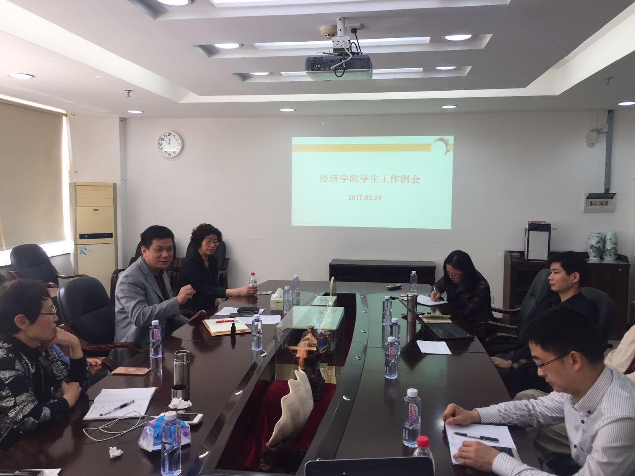 学工办和研管办首先对开学以来的学生工作和本学期工作计划做了通报。林伟雄介绍了开学初学院组织走访学生宿舍、召开学业分析大会、落实院领导干部联系班制度、举办“学生创新学习与实践训练营”专题讲座、关注和帮扶特殊学生和延迟毕业学生等;本学期将重点做好“挑战杯”省赛和国赛的指导、beat365英国官方网站澳门同学会筹备、“书香经院”读书分享活动、校心理剧大赛等工作研管办钟春生主任通报了开学初研究生学生的思想动态、学生成绩及学位申请工作,并对本学期即将开展的研究生会素质拓展、研究生足球赛、辩论赛等活动进行了介绍。