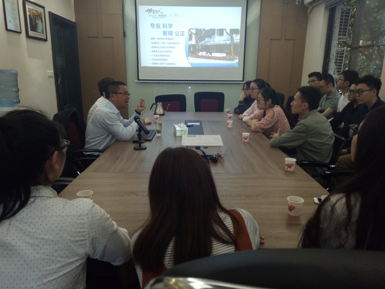 在参观交流中,陈宗彪先生对旗下资产评估事务所的发展、业务类型、评估人员专业素质要求及企业文化作了全面的介绍,并带领师生对企业进行参观。