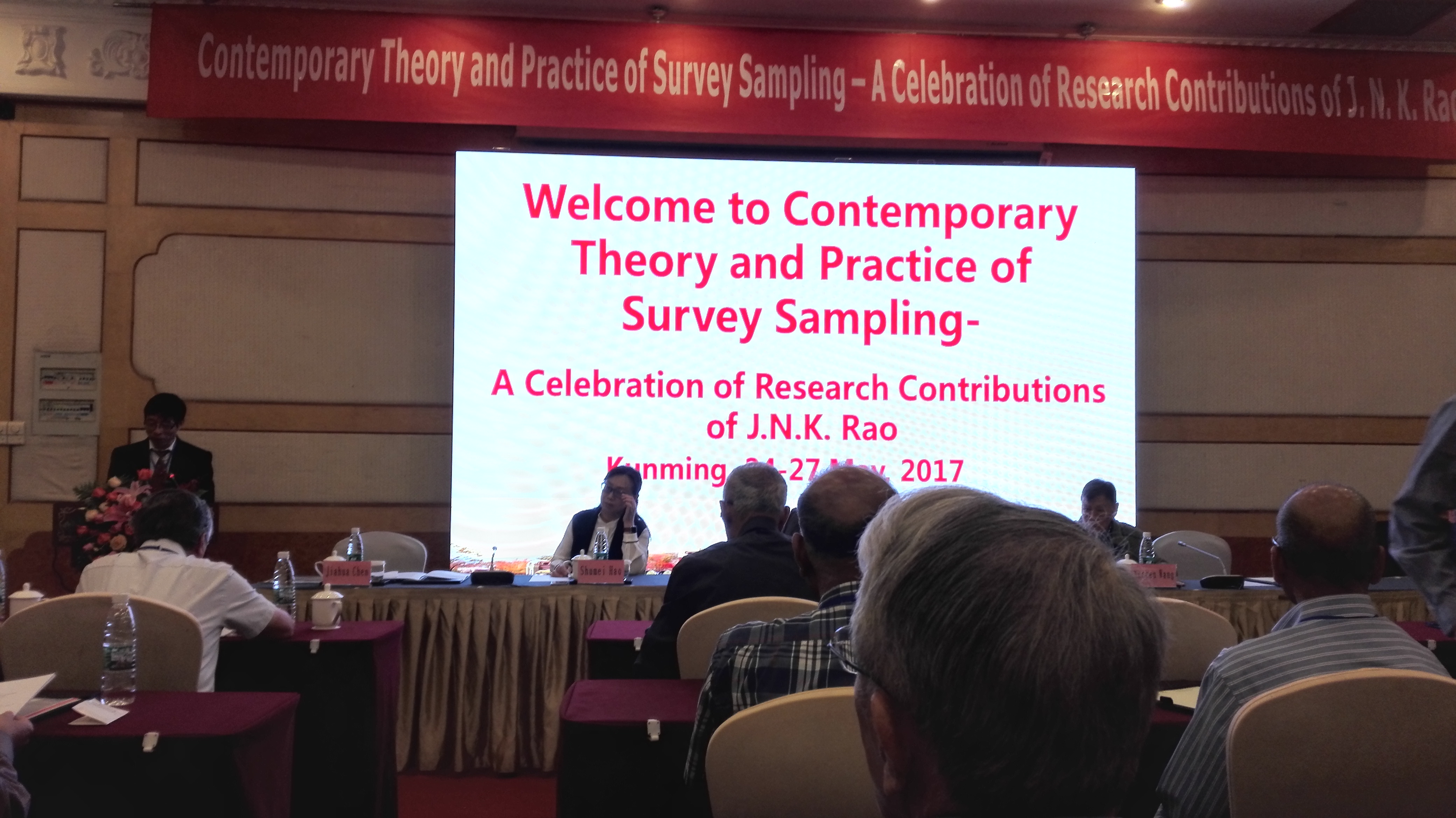 2017年5月24日至27日,我院统计学系陈光慧老师参加了在云南大学举行的现代抽样调查理论与实践国际研讨会暨J.N.K. Rao研究贡献庆典。J.N.K. Rao是国际上著名的统计学家和最权威的抽样专家。来自美国、英国、加拿大、印度和以色列等国的30多位国际知名的抽样专家学者参加了此次会议,并开展学术交流。陈光慧老师报告的主题是“The Construction and Application of the Generalized Regression Estimation System in China”。该报告在系统总结西方国家成功经验的基础上,引入并改进了一套广义回归估计系统,应用在我国复杂的连续多阶抽样调查中,通过模型组和模型水平将现有的超总体模型进行扩展,建立各种类型的回归模型进行模型辅助的广义回归估计,最终形成一套广义回归估计系统,为中国抽样估计的应用研究奠定理论基础。会后,陈光慧老师与来自各国政府统计部门和科研学者就我国政府统计调查的抽样框编制、抽样估计方法和样本轮换等问题进行了讨论,彼此交流了各自国家的成功经验。