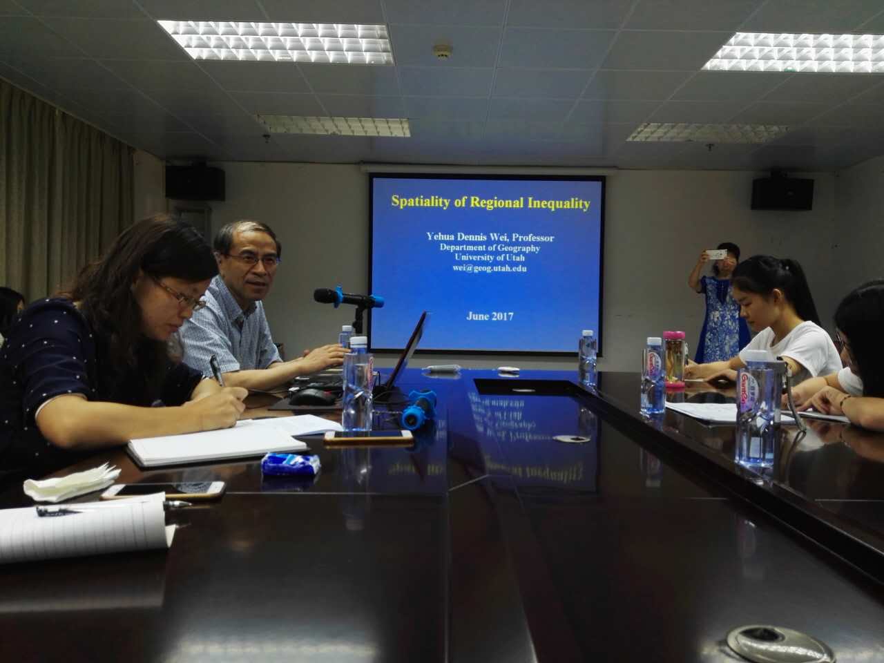 2017年6月14日下午,美国犹他大学地理系(终身)教授魏也华在beat365英国官方网站102会议室举行了题为《Spatiality of regional inequality》(区域差异的空间性)的讲座报告。