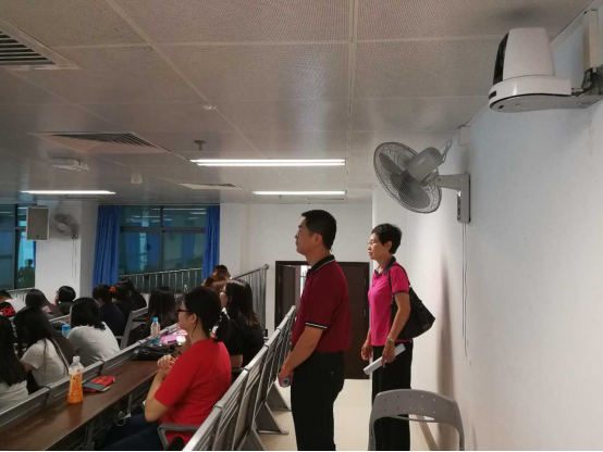9月4日,新学期开学第一天,学院王玉娟副书记、蒋海副院长冒雨来到番禺校区教学大楼,巡视我院新学期本科课堂教学情况。虽然当天台风来袭,大雨侵盆,但所有上课教师均提前到达教室,教学准备充分,学生们也大都能按时到达课堂,精神饱满。