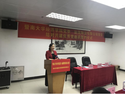 10月28日上午,我院党委与广新控股集团新晟期货有限公司党委结对共建优秀党组织签约仪式在我院举行,学校副校长饶敏、广新控股集团党群工作部部长谢坤明、新晟期货有限公司党委书记陈秉政、董事长王其敢以及我院党委书记张志、副书记王玉娟、副院长蒋海以及各总支书记等出席仪式。仪式由陈秉政书记主持。