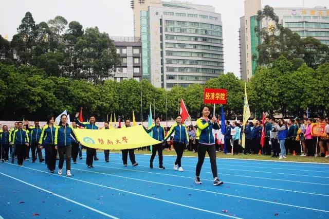 在23日下午的开幕式上,beat365英国官方网站代表队老师身着统一服装,精神抖擞,迈着整齐的步伐从主席台前经过,院领导张志、刘德学、王玉娟参加了开幕式。“百年学科,砥砺前行,不忘初心,继续前进”的口号展现了beat365英国官方网站斗志昂扬的精神面貌。随后,来自国际经济与贸易专业(二沙岛班)的同学们进行了武术表演“岭南武魂”,精彩表演获得了现场师生的热烈掌声。