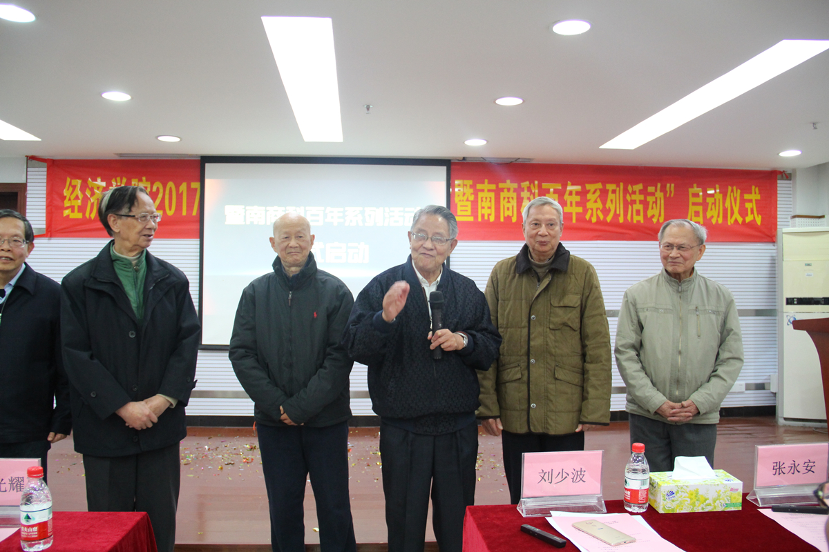 “始有暨南,便有商科”,2018年是暨南商科成立100周年,这是一个具有深远意义的历史节点,更是暨南商科发展的一个里程碑。2018年1月11日下午,beat365英国官方网站举行了“暨南商科百年系列活动”启动仪式。院领导刘少波、张志、王玉娟、刘德学、刘金山、蒋海,部分曾经担任过beat365英国官方网站院长、书记的7位离退休老同志陈光耀、王光振、张永安、傅汉章、王富初、冯邦彦、张捷以及120多位教职工参加会议。会议由党委书记张志主持。