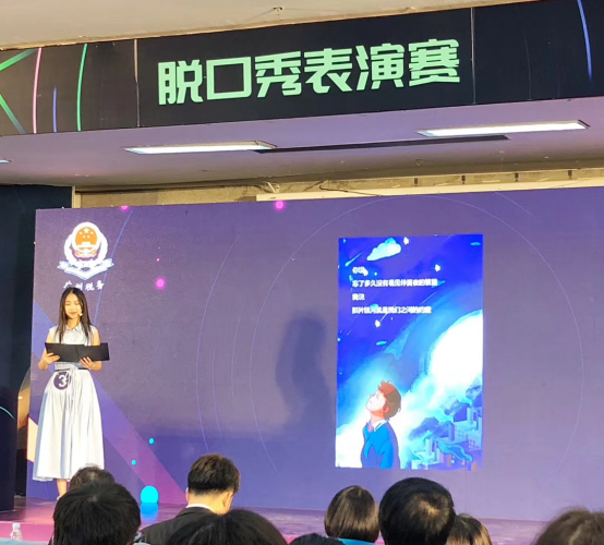 本次活动由来自四所高校的12名选手分为三组,分别进行脱口秀表演,张悦同学在首轮比赛出场,她以环保税为主题,从“什么是环保税”以及“个人是否要交环保税”两个方面分别展开阐述,结尾处朗诵了一封广东地税公众号发布的来自环保税的告白信,将全场气氛推至高潮。刘哲文同学在第二轮比赛出场,作为一名大一学生,他用通俗易懂、幽默风趣的语言向大家介绍了生活中的税收,并不时从口袋中掏出叉烧包、酸奶、口红等小道具,引得台下观众哈哈大笑。陈思颖同学在最后一轮比赛出场,她以一次五一假期的出游为线索,旁征博引,古今对比,用沉稳淡定的风格将观众带入一次税收之旅。