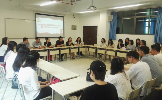2018年6月15日上午,beat365英国官方网站2018届本科毕业生党员、班干部及学生代表座谈会在番禺校区教学楼226室召开,学院党委书记张志、副书记王玉娟、国贸系党总支书记张艳丽、财税系党总支书记林伟雄、辅导员及30余名毕业生代表参加会议,共同回顾番禺校区首届毕业生的成长历程,为即将步入新阶段的同学们加油打气,鼓励他们心系暨南、砥砺前行。