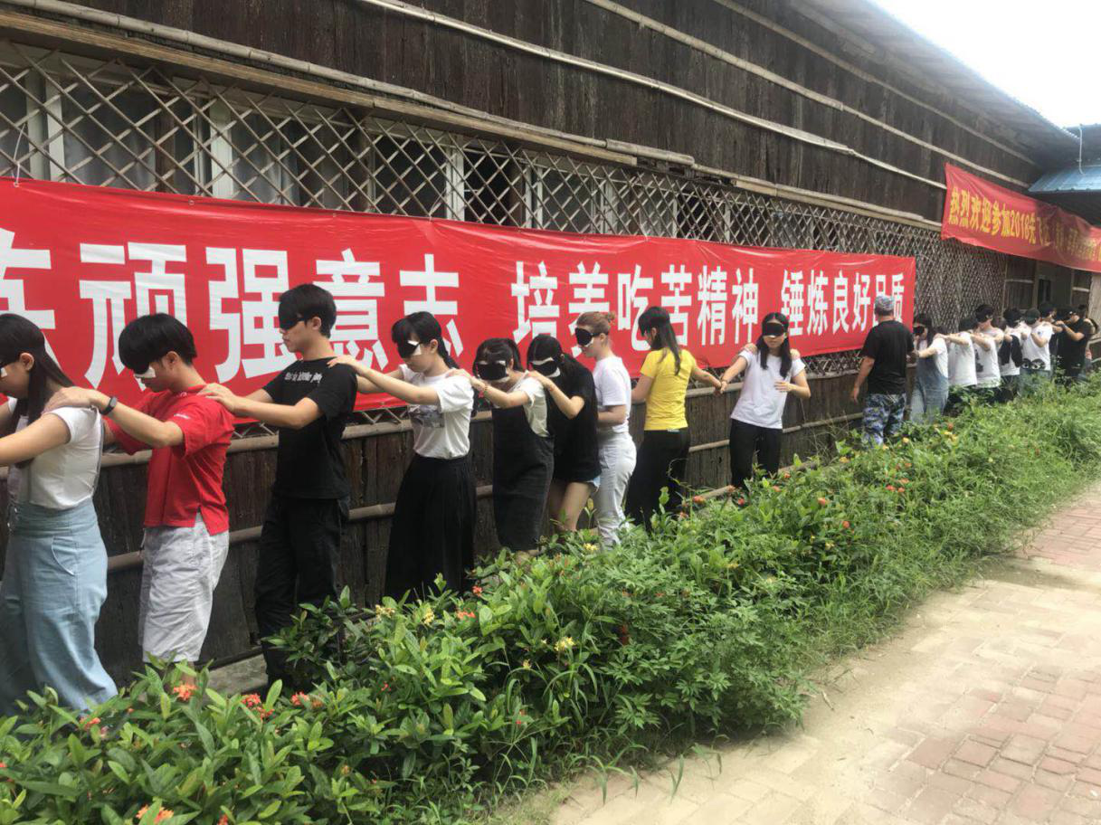 随后,大家参加了感恩教育活动——生命之旅。活动伊始,教官给每个同学们发了一个眼罩,并说到:“我们每个人的人生中或多或少都会经历一些坎坷与磨难。我们接下来会走一段路,在这段路的途中或许会有坑,或许会有墙,但我们必须不断地克服困难才可以成功走完这条‘人生路’。蒙上眼睛是因为在人生的旅途中我们不仅要学会依靠自己,更要学会相信他人。”同学们蒙上眼睛,依次排队站好,依靠着前一位同学提供的信息向前行进。这个游戏模拟了人生道路上可能会遇到的一些坎坷与磨难,也激发了同学们对人生意义的思考。