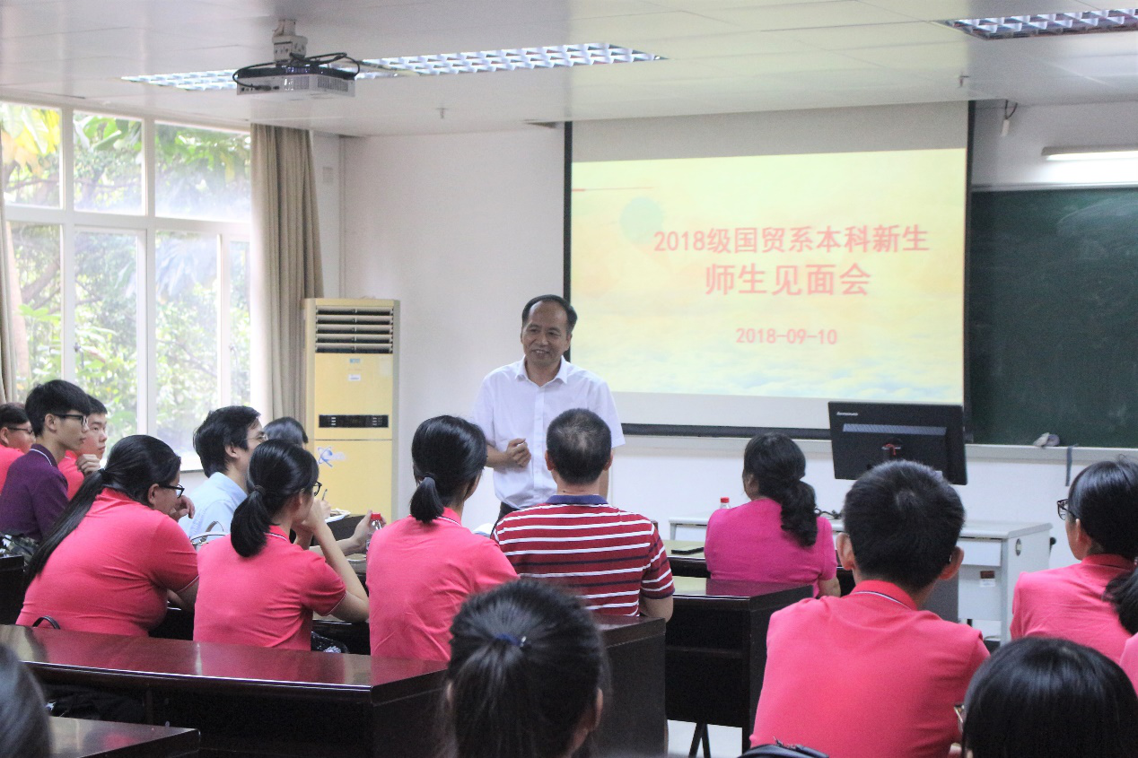 学院刘德学副院长对国际经济与贸易专业新同学的加入表示欢迎,寄语同学们要成为一个有容乃大的人,为一生的发展奠定好的基础;陈红蕾主任讲解了国贸系的学科架构和师资队伍;徐林清副主任介绍了学分制和选课制度,强调了绩点与学习规划的重要性;张艳丽书记则提醒同学们要注意人身安全和财物安全。见面会当天正值教师节,同学们用热烈的掌声向老师们致以节日的祝福。