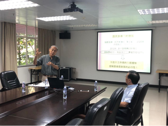 市川一夫教授分析了日本宏观经济发展的现状和问题,探讨了由于超高龄社会和生活习惯病持续增加,导致的日本医疗费用不断增加的社会问题。为了克服这一问题,日本产生了“健康医疗旅游”的新型旅游形态。讲座过程中,市川一夫教授与在场师生就日本是否存在分级诊疗问题、中日就业形势问题等内容进行了深入地互动交流。