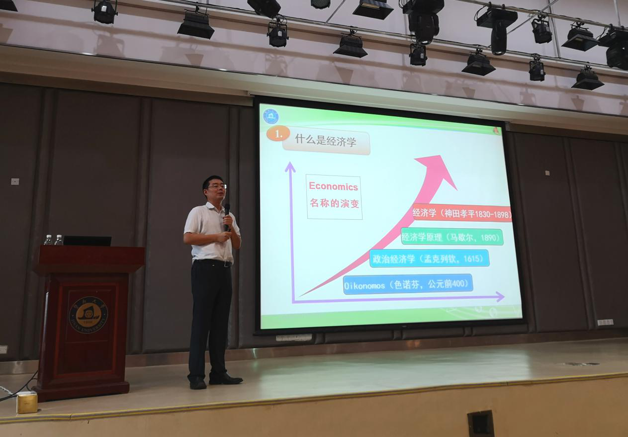 为什么要学习经济学?王兵从“哪些人在学经济学”,“不懂经济学的后果”和“经济学的帝国主义”三个方面进行了阐述,生动有趣的案例引起了同学们的兴趣,大家聚精会神地聆听,不时在本子上做着记录。
