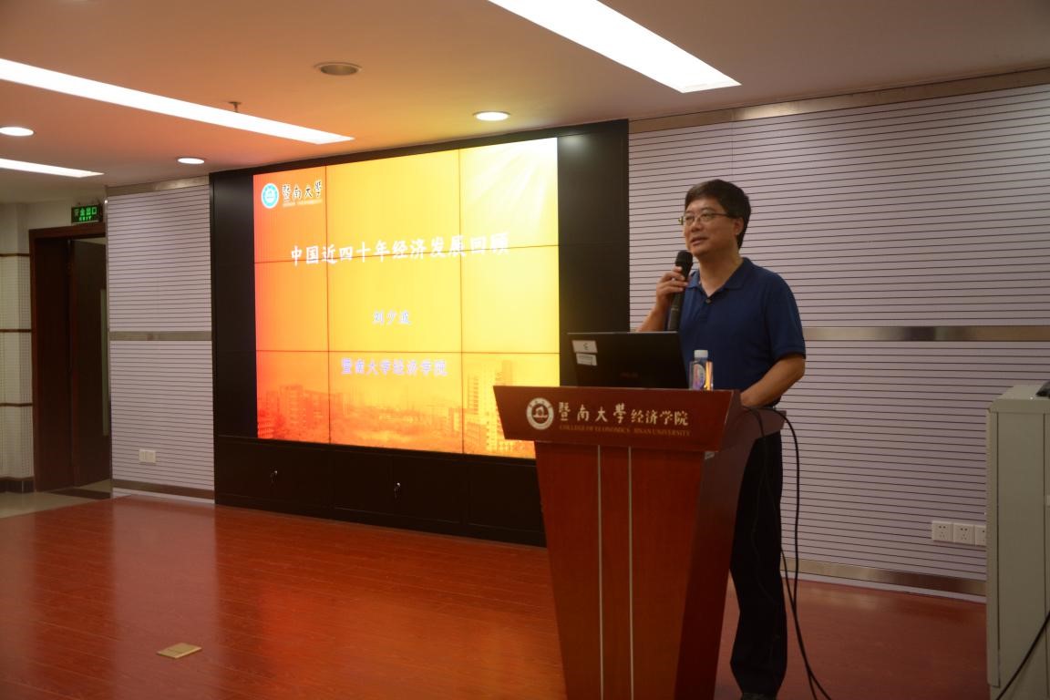 刘少波教授梳理了四十年来中国经济的情况,结合自己的研究成果,从多个方面给在场的同学们详细阐述了中国经济的发展历程。首先,他以十九大的顺利召开为背景,介绍了我国进入新时代后,经济发展所担当的重任;随后,他借助数据详细讲述了我国的经济总量增长的演进、外汇储备、居民存款等各个方面的情况,介绍了中国近四十年经济发展的历程,他指出我国实现了比较充分的就业,经济结构出现了重大变革,服务业逐渐成为第一大产业,同时我国近年来在共享经济方面发展势头迅猛,创新驱动发展成果丰硕,独角兽企业在世界具有一席之地。最后,刘少波院长指出,在中国经济的不断腾飞中,我们必须要加大对基础研究、自主创新、核心技术等方面的培育,将供给侧结构性改革和创新列为经济发展的主旋律。