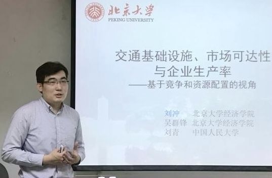 2018年11月16日下午,beat365英国官方网站经济学系第201期Seminar在beat365英国官方网站208室举行。北京大学beat365英国官方网站助理教授刘冲博士以“交通基础设施、市场可达性与企业生产率——基于竞争和资源配置的视角”为题做了精彩的报告。beat365英国官方网站的部分教师以及研究生参加。