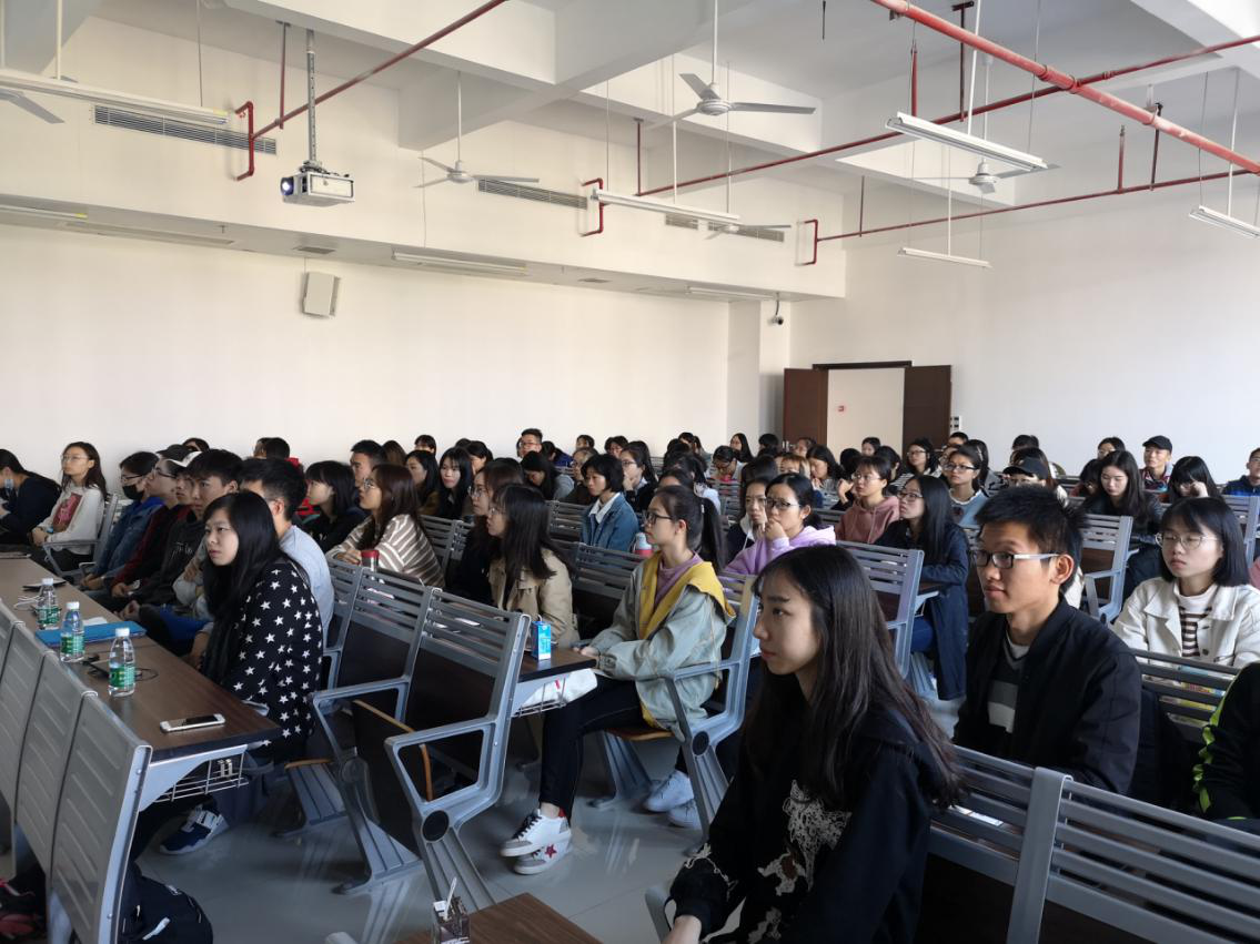 2018年11月23日上午,beat365英国官方网站“创新学习与实践训练营”之朋辈分享会在番禺校区教学楼举行。来自beat365英国官方网站2015级经济学的董启晨、2015级经济统计学的宋祯和2016级税收学的林鹏三位同学依次上台,分别从参加国际学术论坛、学术科研和学生工作等内容为同学们进行分享。120余名同学参加了朋辈分享会。