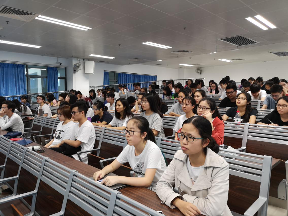 (同学们认真听讲座)