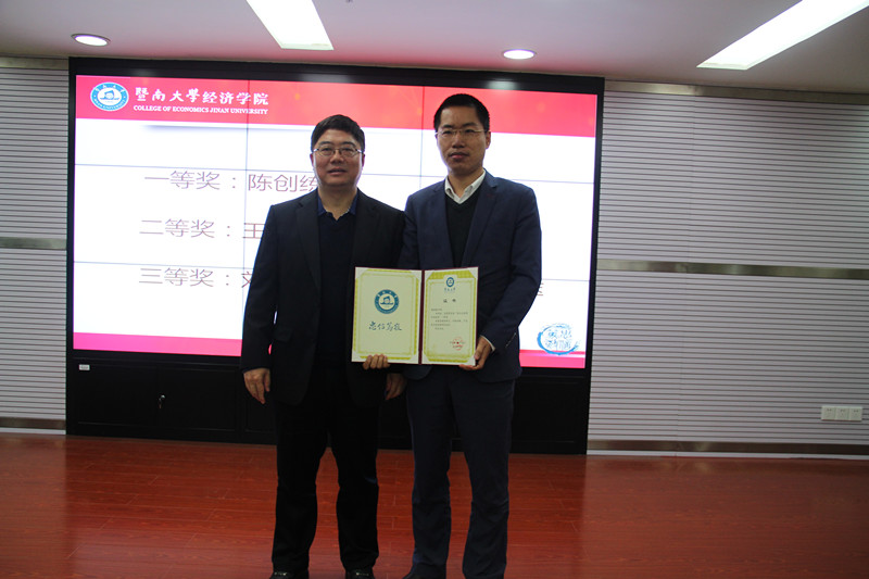 刘少波院长为“张元元经济学创新奖”获得者颁奖