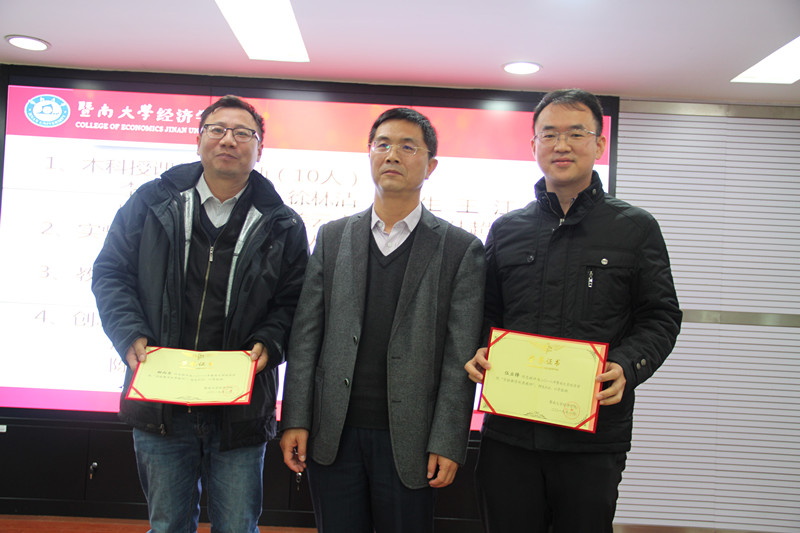 随后,举行首届“张元元经济学创新奖”颁奖仪式。刘德学副院长宣读“关于表彰首届‘张元元经济学创新奖’获奖教师的决定”。该奖项由校友卢闰霆先生以恩师张元元教授名义设立,旨在传承发扬以张元元教授等为代表的老一辈经院师长的奉献和创新精神,鼓励我院教师在科研上刻苦钻研、勇于创新,不断提高创新能力。刘少波为6位获奖教师颁奖。