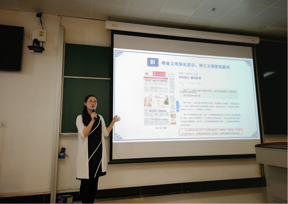 为认真贯彻落实《广东省教育厅关于在清明节放假前同上一堂特别思政课的紧急通知》的有关要求和学校关于假期安全教育和管理的工作任务,2019年4月4日下午,beat365英国官方网站以“慎终追远感恩幸福生活,携手同行树立文明新风”为主题,在清明节放假前于番禺校区教学楼N113室组织开展主题教育活动。学工办刘慧婷老师围绕清明节文明祭祀、安全用火以及弘扬中华优秀传统文化与革命文化等内容,教育引导学生增强文明祭祀意识和森林防火意识,传承英烈精神,弘扬光荣传统,为同学们带来了一场生动的思政课。学工办李怡梦老师、beat365英国官方网站本科各年级学生干部、优秀学生代表和部分港澳台侨学生干部约230人参加了思政课。