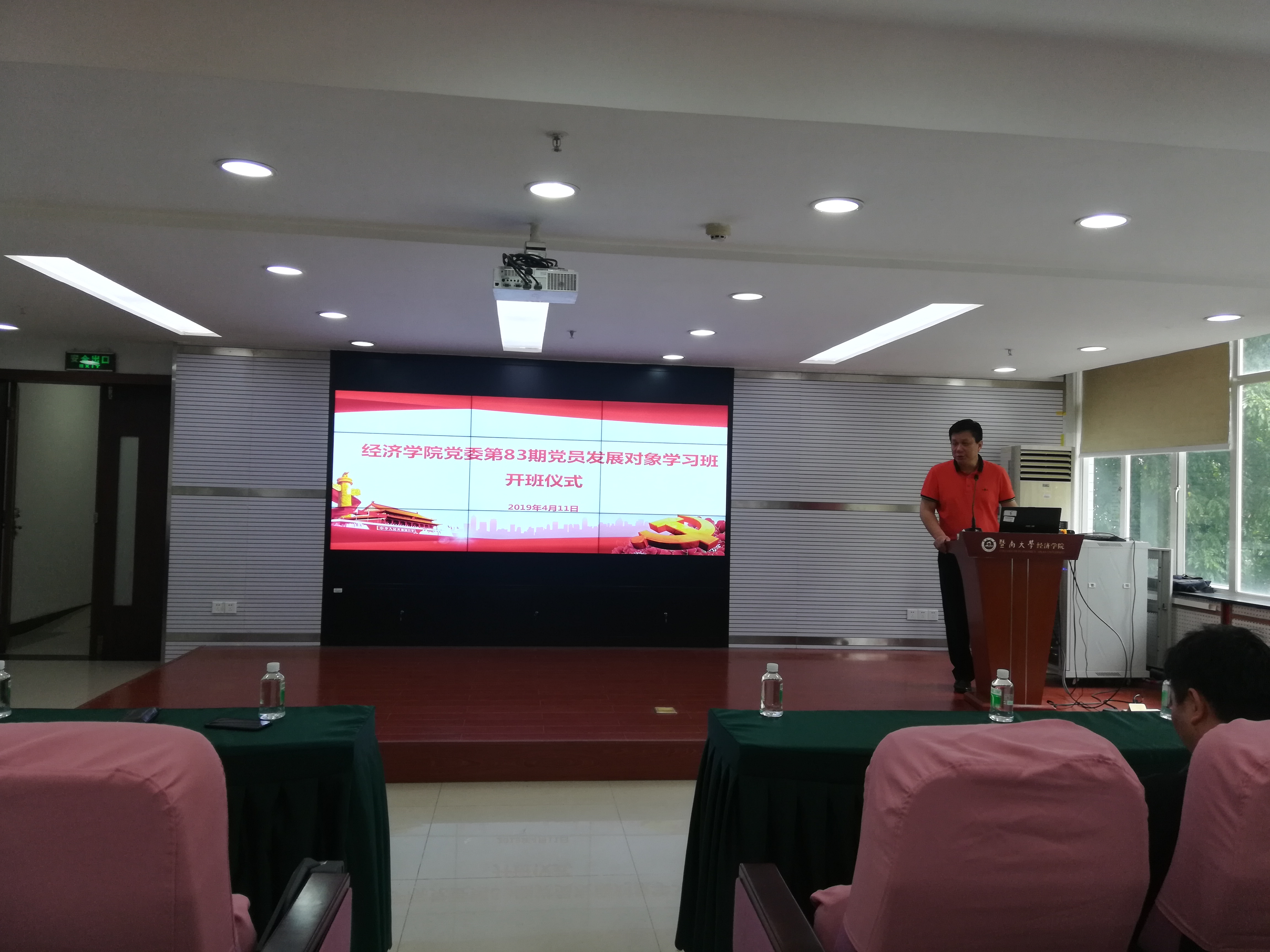 4月11日下午,张志书记出席学习班开班仪式并致辞。他代表学院党委对46名学员表示欢迎,并向大家简要介绍了本期分党校的课程安排。他强调,全体学员要端正入党动机,坚定理想信念,认真学习党的基本理论和路线方针政策,遵守学习时间和培训纪律,积极参加劳动实践和课堂讨论,在日常学习、生活和工作中严格要求自己的言行,时刻发挥先锋模范作用,以实际行动争取早日加入党组织。