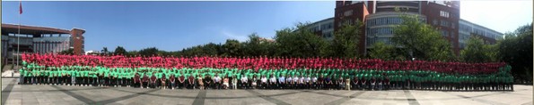 迎新大会前,beat365英国官方网站2019级全体研究生和本科生与学院、各系所领导老师在图书馆广场合影。