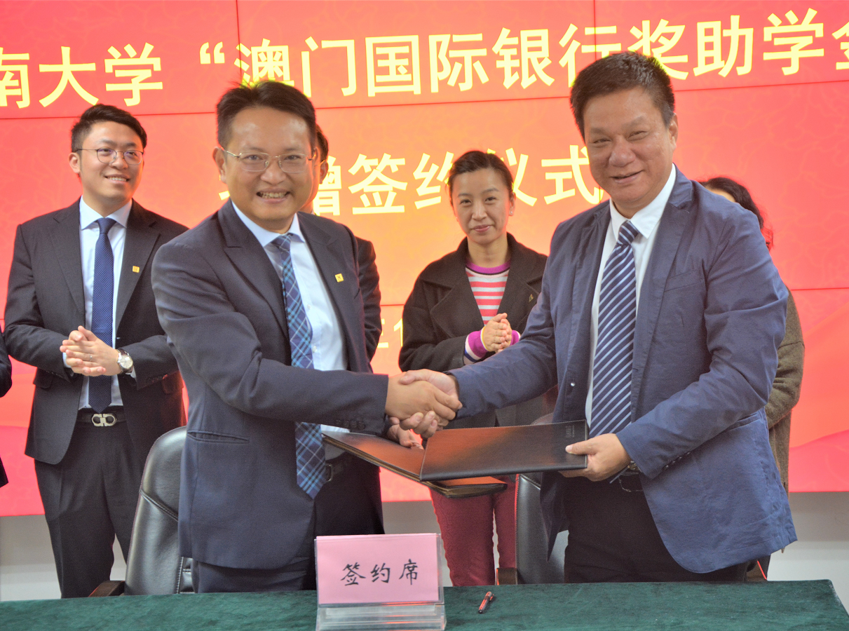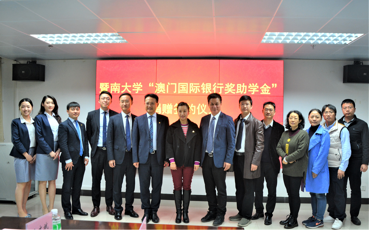 12月12日下午,beat365英国官方网站“澳门国际银行奖助学金”捐赠仪式在我院102会议室举行。beat365英国官方网站对外联络处副处长兼教育发展基金会副秘书长刘毓洁、beat365英国官方网站党委书记张志、澳门国际银行副总经理兼广州分行总经理郭奕明等双方领导出席了本次捐赠仪式。