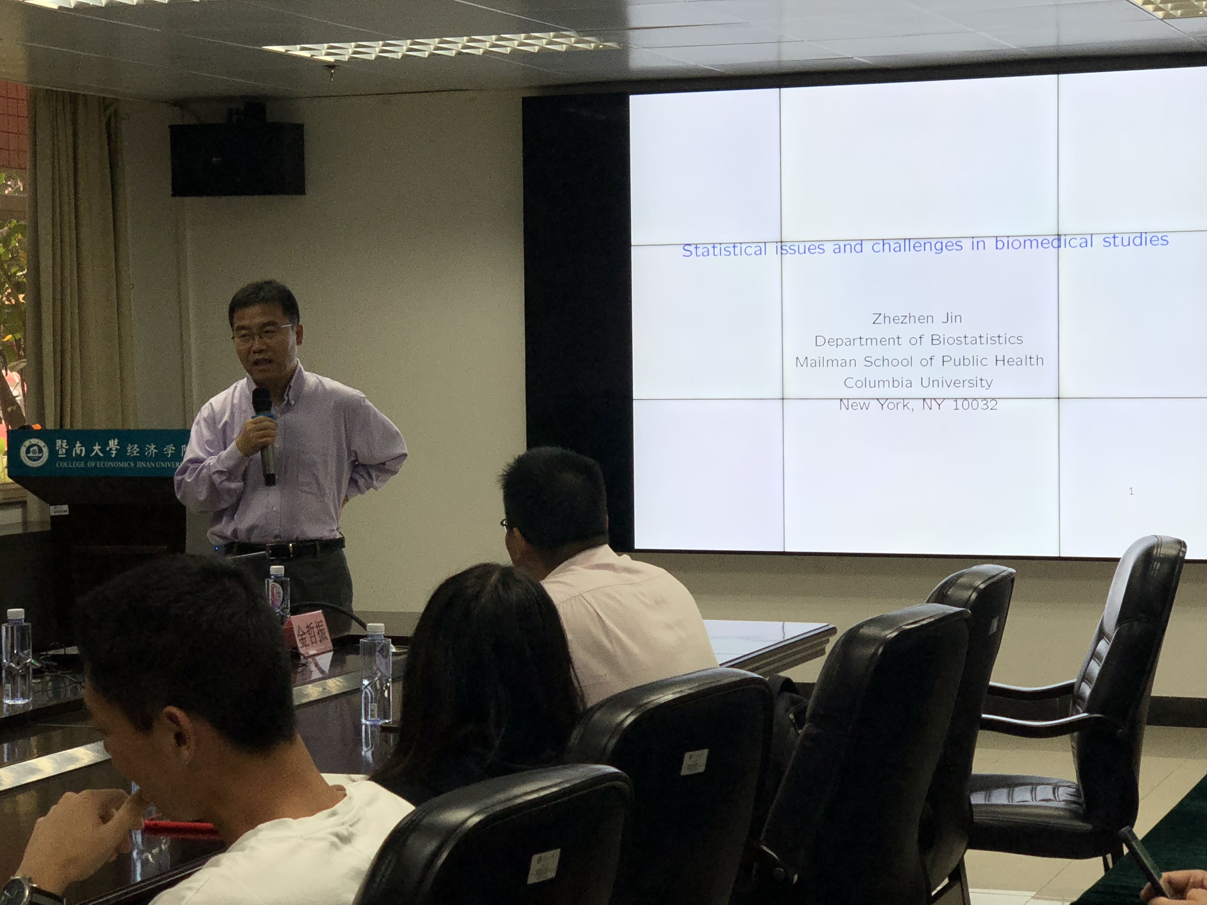 2019年12月17日下午,哥伦比亚大学生物统计系教授、博士生导师金哲振在beat365英国官方网站102室作了一场主题为“生物医学研究中的统计问题和挑战”的学术讲座。报告会由beat365英国官方网站统计学系系主任、教授郑少智主持。