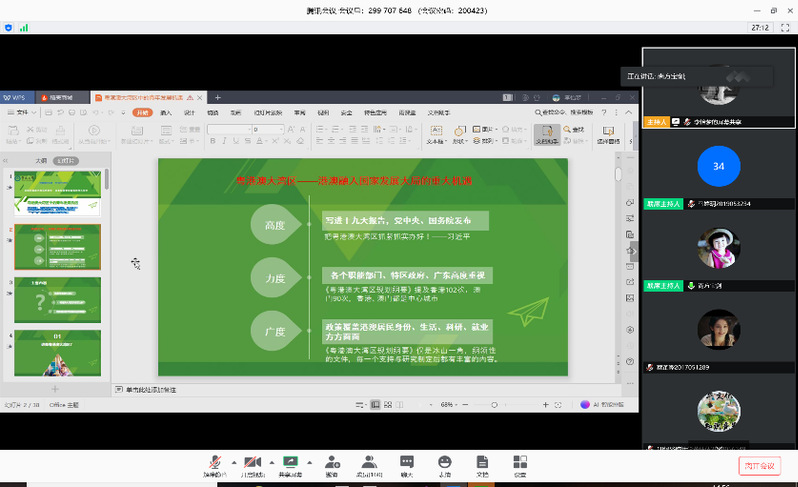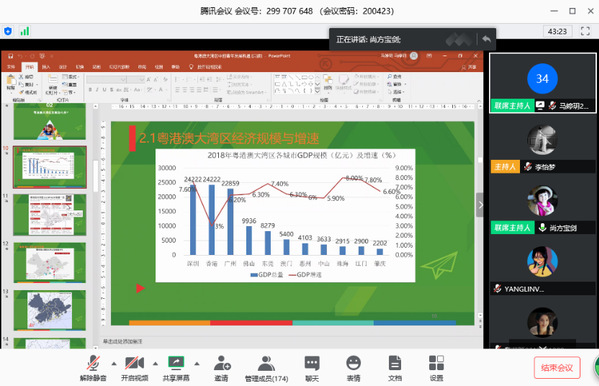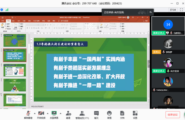 2020年4月23日下午,beat365英国官方网站举办了“学业精进,砥砺前行”——优秀港澳台侨学生综合能力提升计划之导师导学讲座,特区港澳经济研究所副所长谢宝剑老师通过腾讯会议的形式,为170余名港澳台侨同学做了题为《粤港澳大湾区的港澳青年发展机遇与担当》的“云讲座”。谢宝剑从高度、力度和广度三个维度阐述了粤港澳大湾区是港澳融入国家发展的重大机遇,政策覆盖港澳居民身份、教育、医疗、社保、科研、就业等以及生活便利等许多方面。