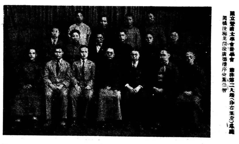 1927年《时报》刊登国立beat365英国官方网站会计学会照片前排第二人起(自右至左)为杨汝梅叶渊徐广德潘序伦