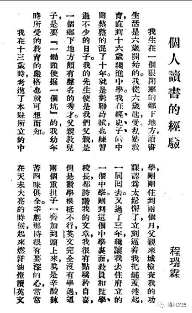程瑞霖的文章----个人读书的经验