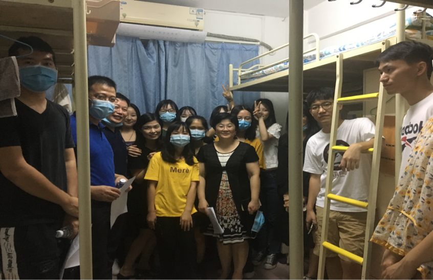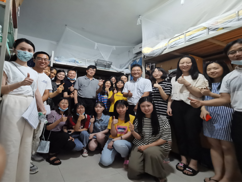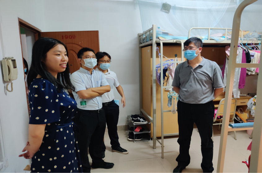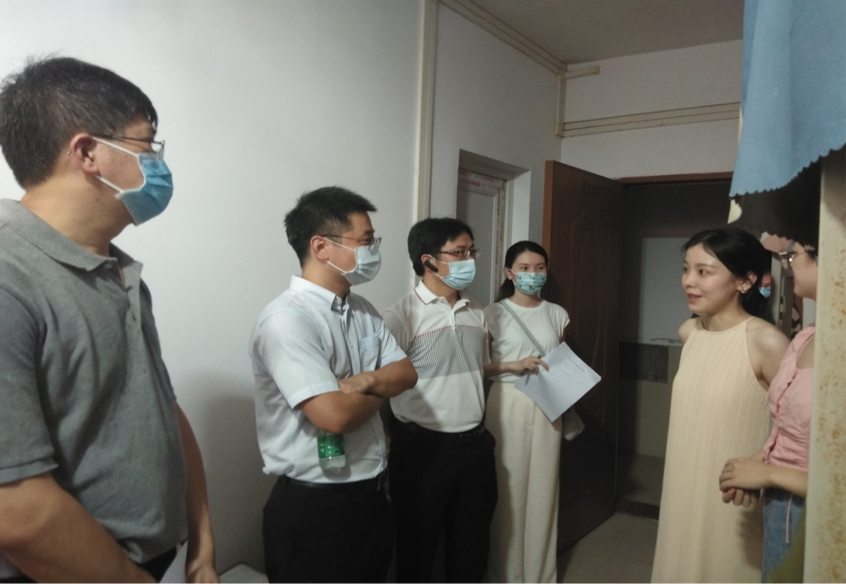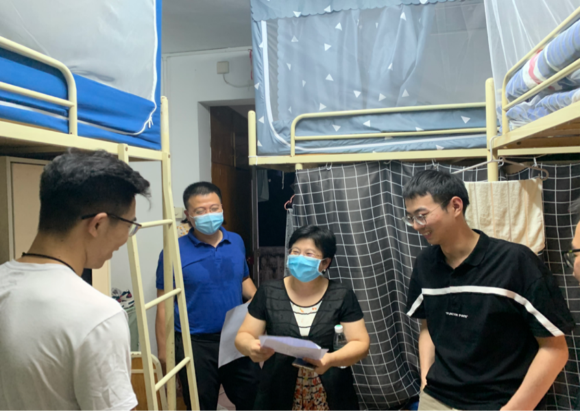 蒋海副院长、郑贤副院长、各系所负责人和老师们的小分队的走访同步进行,各自带队来到学生宿舍看望返校学生,与同学们亲切交谈,鼓励同学们克服暂时的生活不便,积极寻求老师和同学的帮助,调整好心态进行学习和研究。