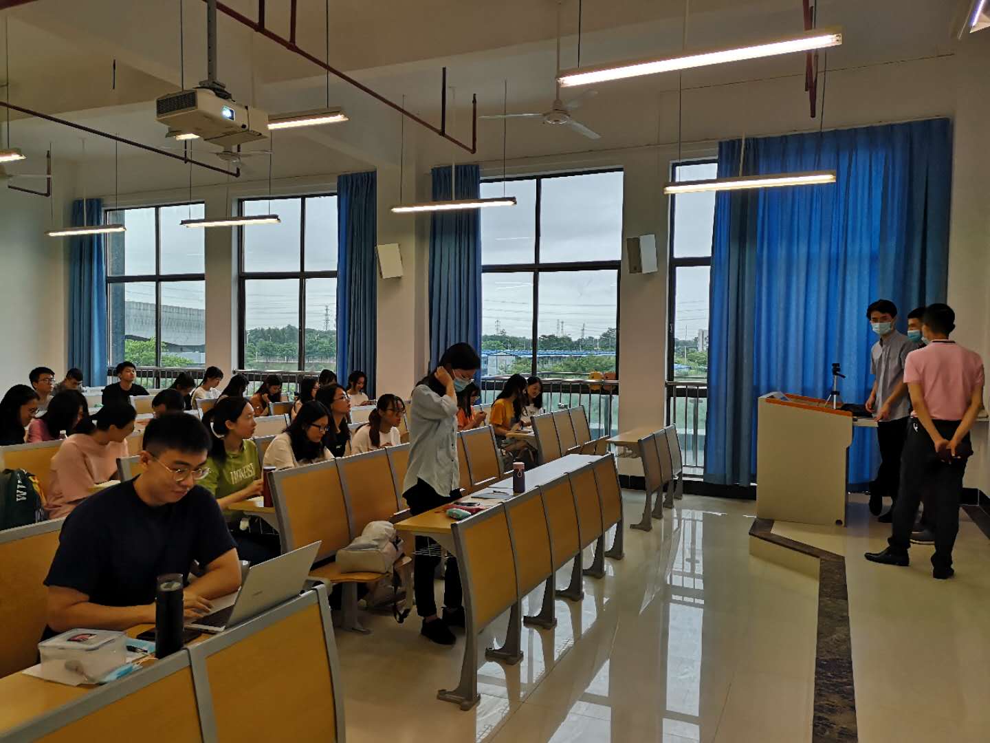 巡查当天,教师们大多采用线下课堂+线上同步形式进行教学,通过教室最新安装的教学直播软件,利用屏幕共享及声音共享的方式,让未能返校的同学实现同步学习。开学第一天,教师备课充分,操作熟练,同学上课积极认真,对于回到课堂表现出兴奋的状态,课堂秩序良好。本次课堂巡查也收到部分师生提出的建议,有利于学院进一步推进本科教学工作。